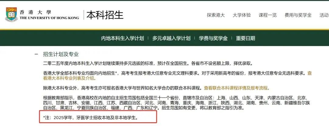 重磅,今年香港大学明确宣布,牙医学士专业在2025学年首次向非本地生招生,这将一举打破港大牙医专业以往只招收本地生的局面。香港身份不再是门槛,内地高考生也能报名!