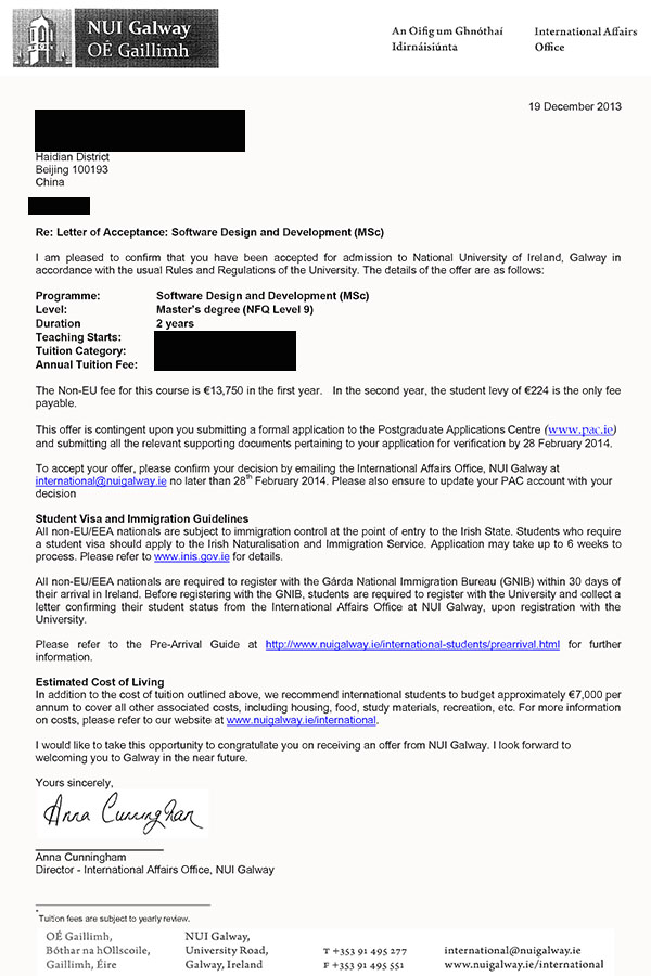 恭喜山东工商学院郭同学获得高威大学软件设计与开发专业OFFER与梅努斯大学金融专业双校OFFER