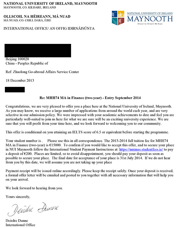 山东工商学院郭同学获得2014高威与梅努斯双校OFFER