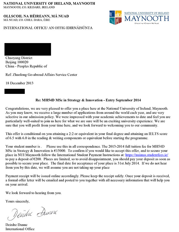 恭喜新加坡Kaplan钟同学获得梅努斯大学战略创新专业OFFER
