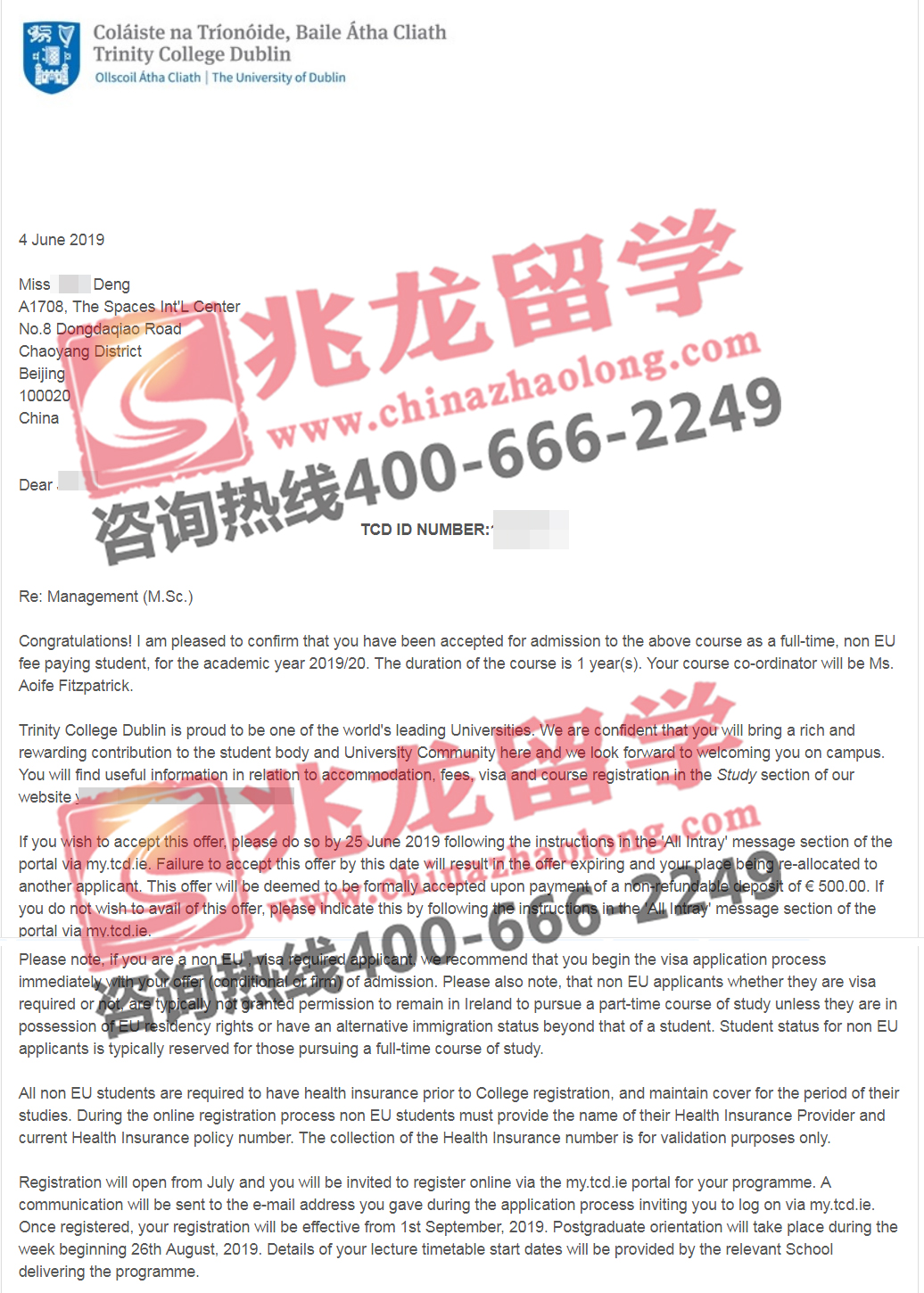 经过兆龙留学-爱尔兰留学签证网老师的努力,成功为邓同学申请到爱尔兰圣三一学院管理学专业硕士offer,以下是学生offer分享,在此祝他留学之路一切顺利!更多爱尔兰留学申请及爱尔兰签证问题请拨打咨询热线400-666-2249。
