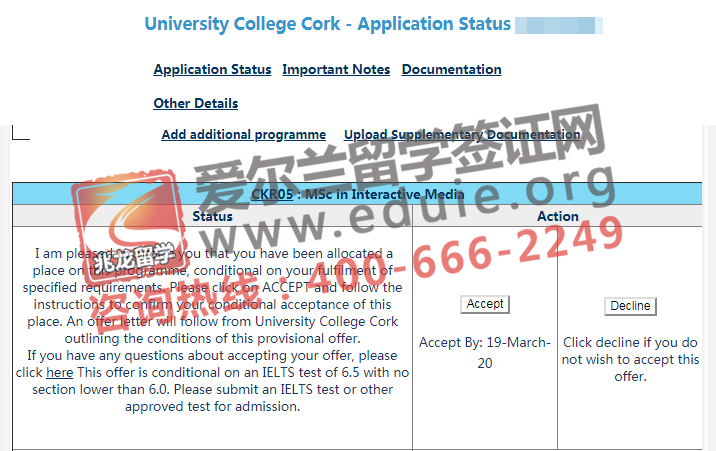 经过兆龙留学-爱尔兰留学签证网老师的努力,成功为甘同学申请到爱尔兰科克大学UCC交互式媒体硕士offer,以下是学生offer分享,在此祝他留学之路一切顺利!更多爱尔兰留学申请及签证问题请拨打兆龙留学免费咨询热线400-666-2249。