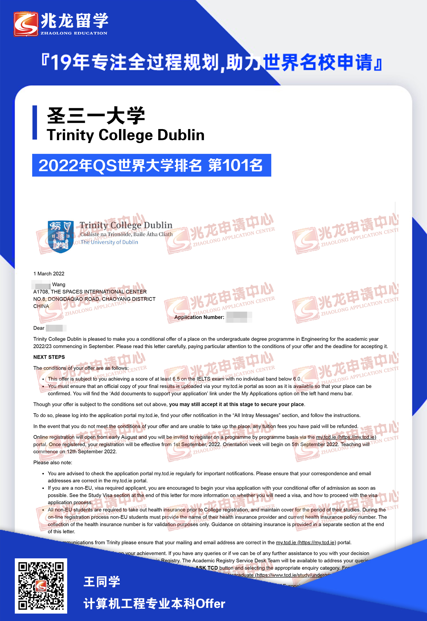 王同学的妈妈是通过朋友介绍了解到北京兆龙留学是一家专业的留学办理机构,也是中国最早(始于2002年)专业做爱尔兰留学的机构之一。王同学的中学学历比较复杂。他是初三下半年去澳大利亚高中读书的,他去澳洲不到一年就爆发了疫情,第一年春节回国之后就因为疫情无法返澳,王同学只能上网课。高三王同学到上海一所跟澳洲合作的国际学校就读,毕业拿到了澳洲VCE的毕业证。