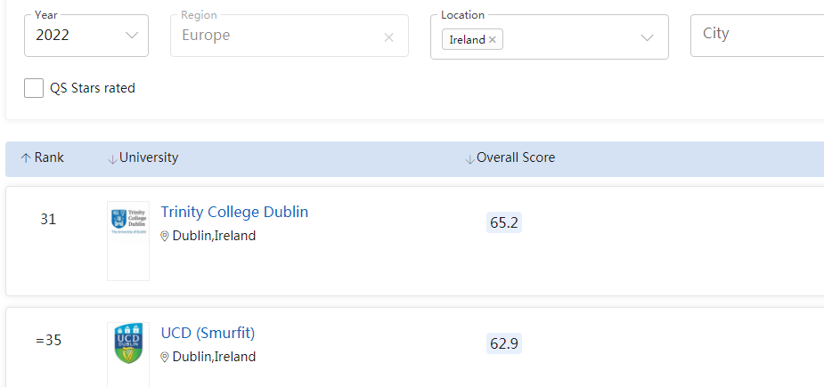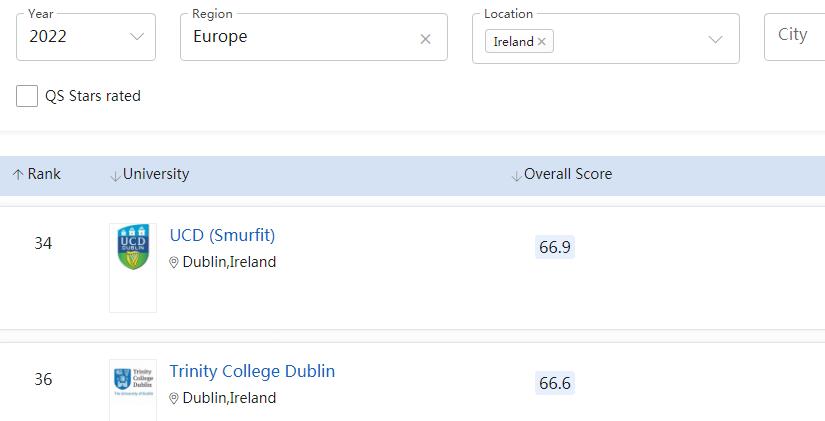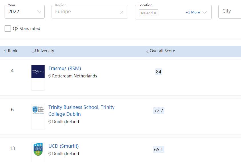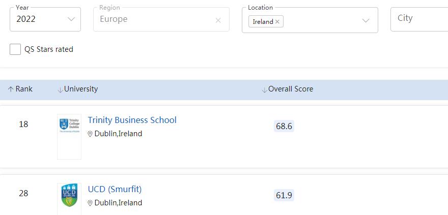 爱尔兰圣三一大学、都柏林大学的商科专业,大都位居世界Top50