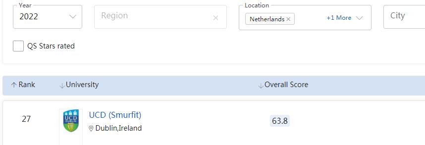 UCD的金融专业,位居2022QS全球第35位