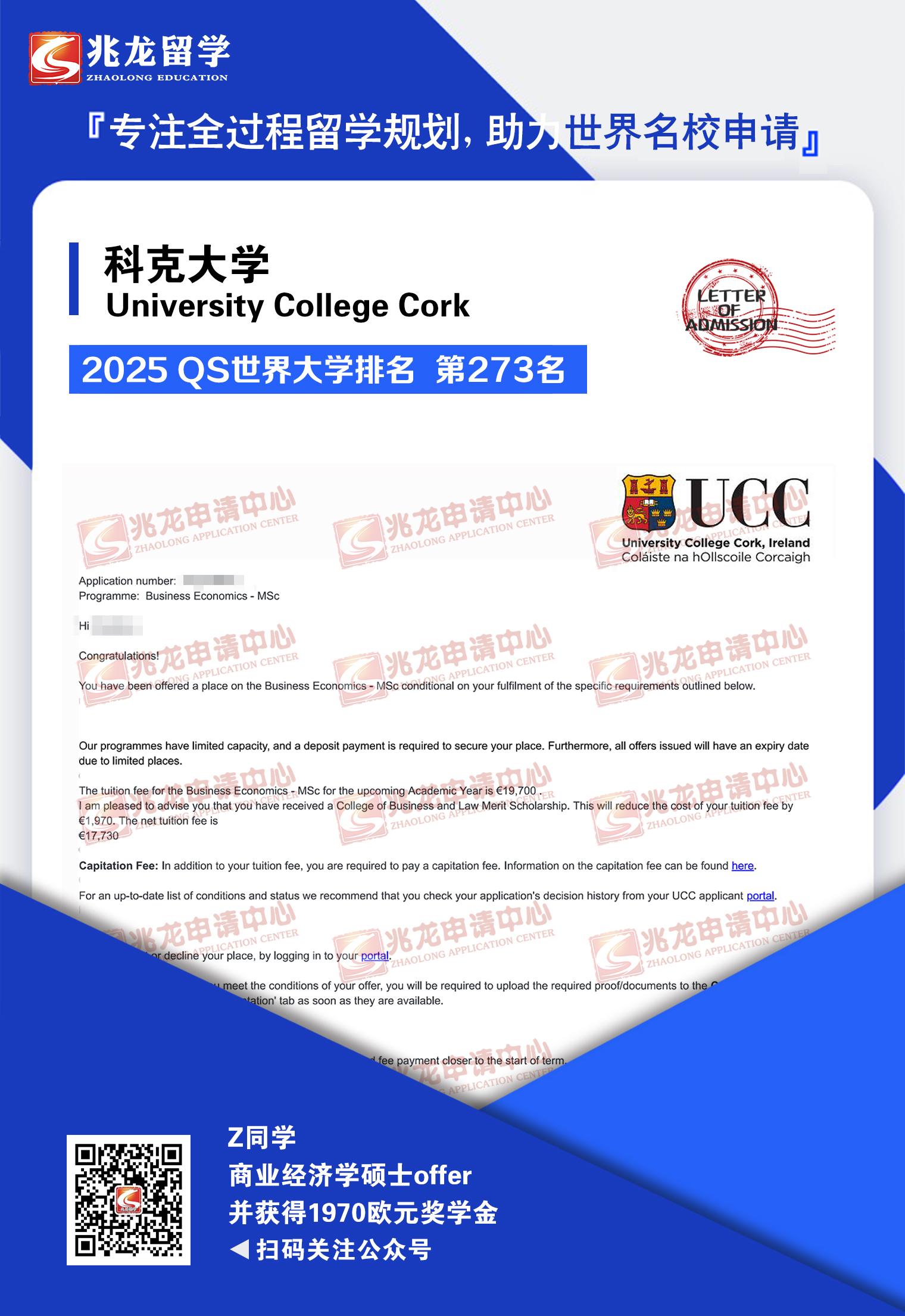 了解更多爱尔兰留学信息欢迎拨打兆龙留学-爱尔兰留学签证网咨询热线:010-58702811。兆龙留学规划师一对一给予辅导,针对你的个人条件,有针对性的,精准定位,寻找适合你的院校和专业,帮你成功踏入理想的校园。也可关注兆龙留学微信订阅号:beijingzl,随时掌握最新留学资讯!