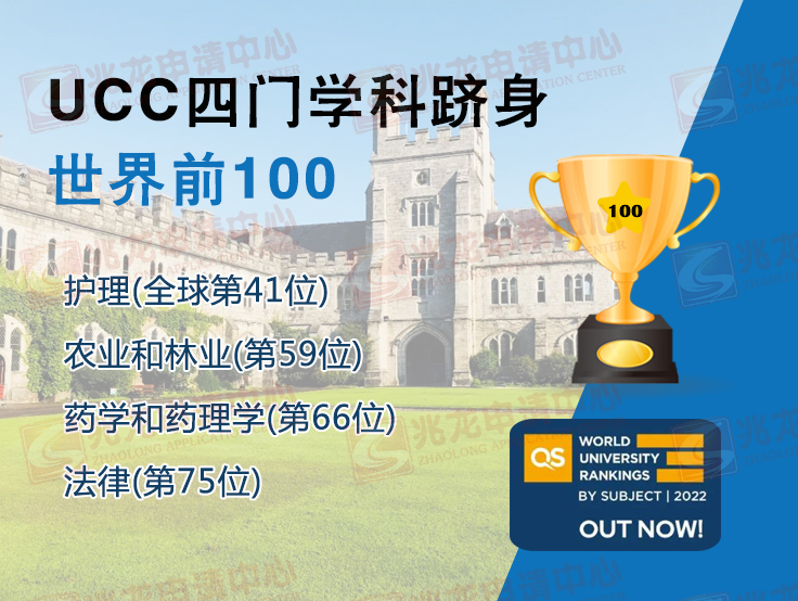 在2022年QS世界大学学科排名中,科克大学(UCC)在护理(全球第41位)、农业和林业(第59位)、药学和药理学(第66位)和法律(第75位)学科位列世界前100名。