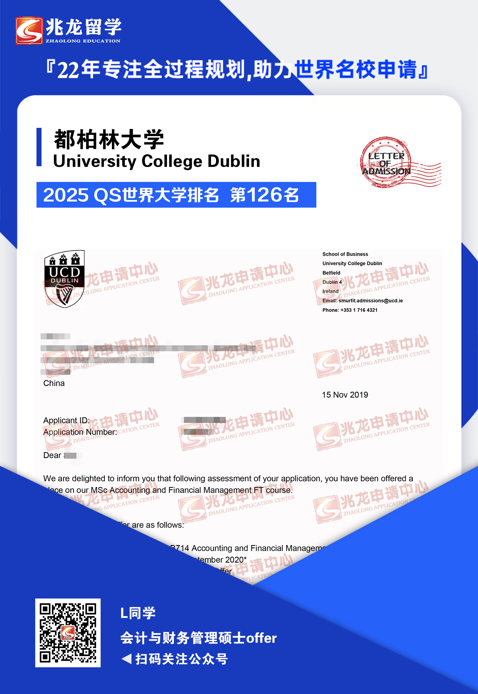 L同学UCD会计硕士offer