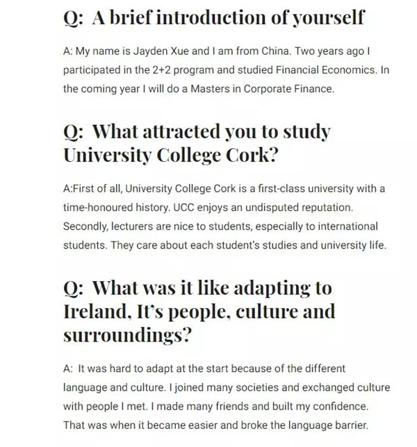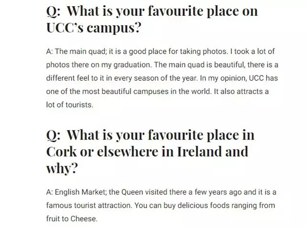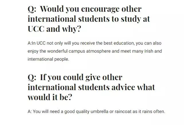 爱尔兰国立科克大学官网国际生代表薛同学专访
