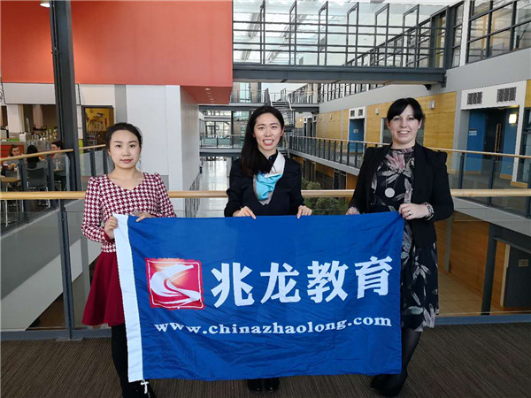 2018年1月北京兆龙留学吕老师、田老师访问了都柏林大学并跟奎恩商学院招生经理Aoife老师合影。