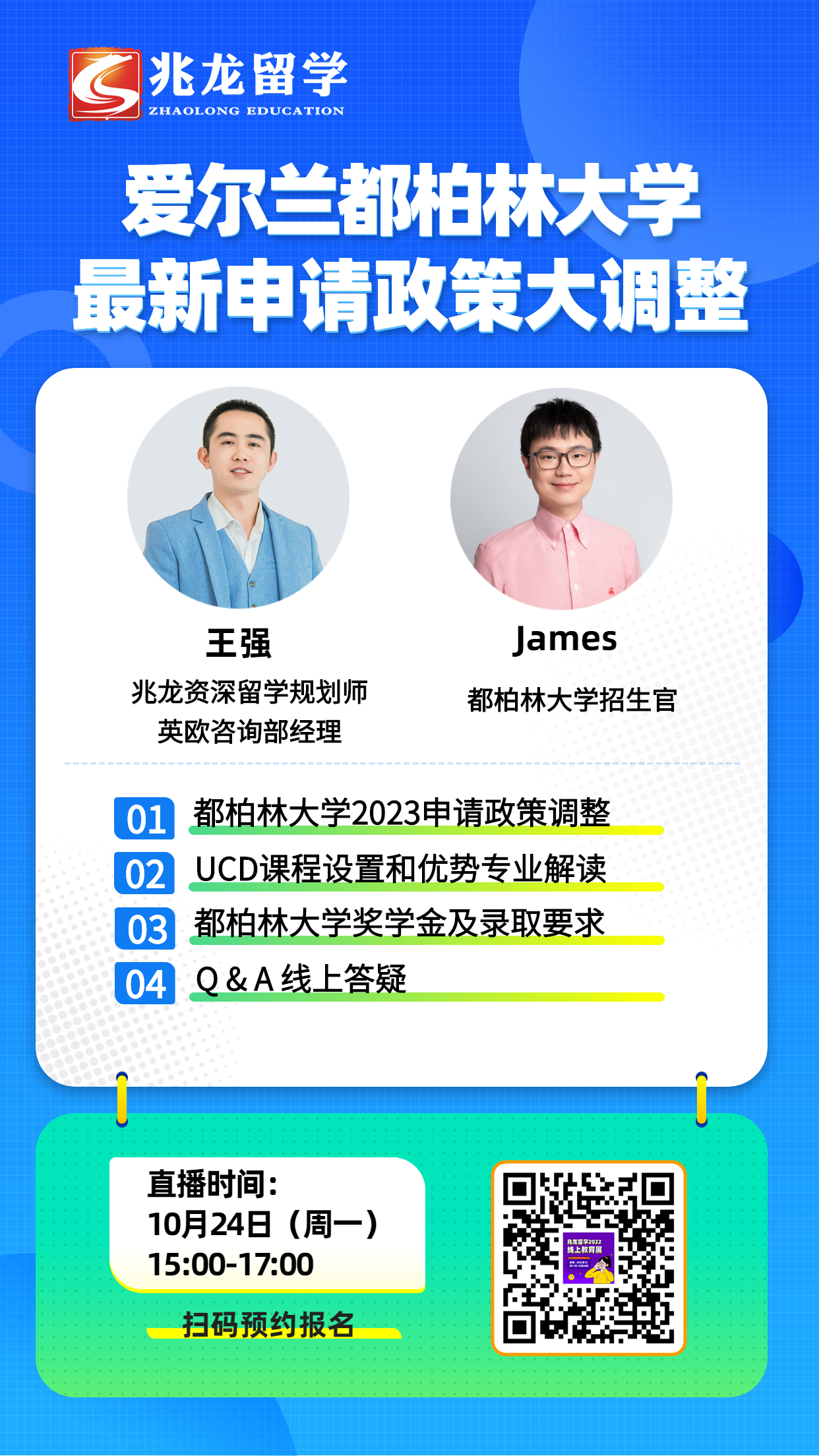 2023Fall申请火热进行中,兆龙留学携手爱尔兰教育署举行的2022秋季线上院校教育展现已拉开帷幕,2022年10月24日(周一)15:00-17:00,兆龙留学特邀爱尔兰都柏林大学,为大家准备一场关于UCD 2023申请的知识盛宴。