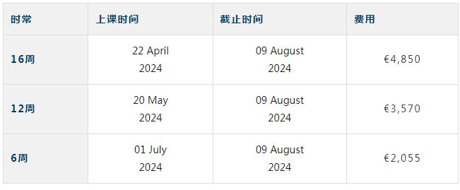 如果各位同学语言没有达到直录要求,可匹配科克大学语言班,通过语言班的考核后,无需再考雅思等国际考试,可直接换取正式录取通知书哦!科克大学语言班分为UEBC4周、Pre-sessional6周、Pre-sessional12周和Pre-sessional16周,两种语言班均为科克大学官方语言班,可根据具体语言分数进行选择,具体介绍信息如下: