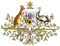 国徽上方是一个蓝、白相间的花环和一颗七角星;澳大利亚