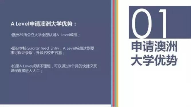 首先是A-Level成绩申请澳洲大学优势。作为英联邦国家,澳大利亚的大学直接接受A-Level成绩入读本科,澳洲39所公立大学全部认可A-Level成绩;部分学校例如墨尔本大学Guaranteed Entry,当学生的A-Level成绩达到申请专业的等级要求可保证录取,而且目前澳大利亚八大对于A-Level的成绩要求较为宽松,升读名校更容易;