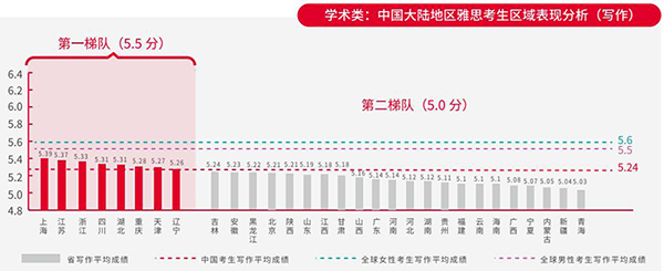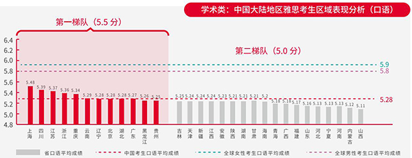 与全球听力平均分属同一分数梯队的省/市达到12个;与全球写作平均分属同一分数梯队的省/市达到8个;而尚未有任何一个中国大陆省份/直辖市与全球平均口语水平属同一分数梯队。