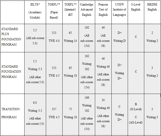 1)UNSW预科及语言认可考试日期距离开课时间不超过一年的雅思或者其他语言成绩。