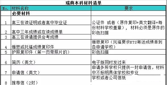 另外瑞典的申请时间是从每年的10.16至1.15,材料截止2.1。申请结果5月中旬左右通知。这就要求学生务必在高三上学期就要提供雅思成绩,在读证明,高一高二成绩单以及完整的文书材料给到校方做申请。