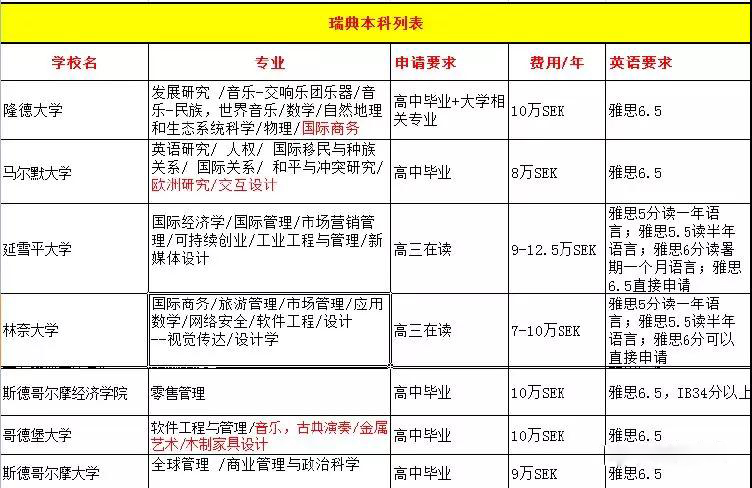 另外瑞典的申请时间是从每年的10.16至1.15,材料截止2.1。申请结果5月中旬左右通知。这就要求学生务必在高三上学期就要提供雅思成绩,在读证明,高一高二成绩单以及完整的文书材料给到校方做申请。