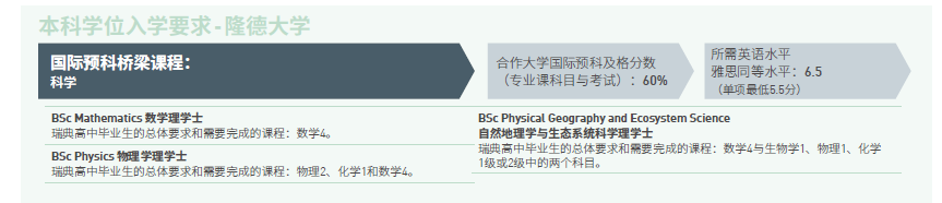 2. 中国高中毕业的数学,物理无法满足隆德本科的录取要求-也就是说100%的不会录取;隆德本科预科提供了相关的数学,物理课程用以满足达到录取要求;