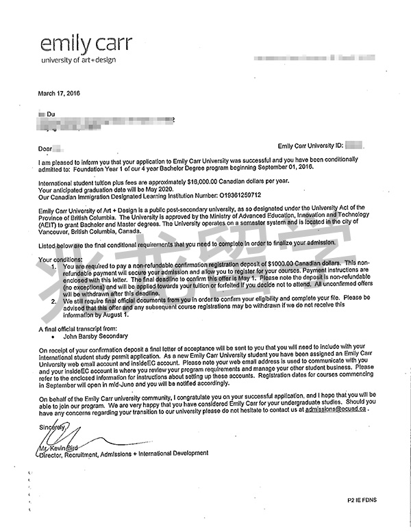 经过兆龙留学老师的努力,成功为都同学申请到北美最顶尖艺术学院Emily Carr (艾米丽卡尔艺术与设计大学)录取OFFER,以下是他的offer分享,在此祝他留学之路一切顺利!