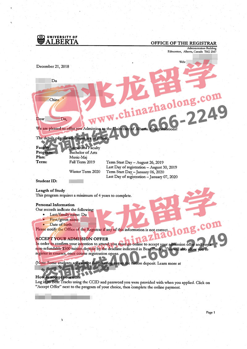 经过兆龙留学加拿大部老师的努力,成功为杜同学申请到加拿大阿尔伯塔大学奥古斯塔娜分校音乐文学学士录取offer,以下是学生的offer分享,在此祝她留学之路一切顺利!更多加拿大留学及签证问题请拨打兆龙留学咨询热线400-666-2249!