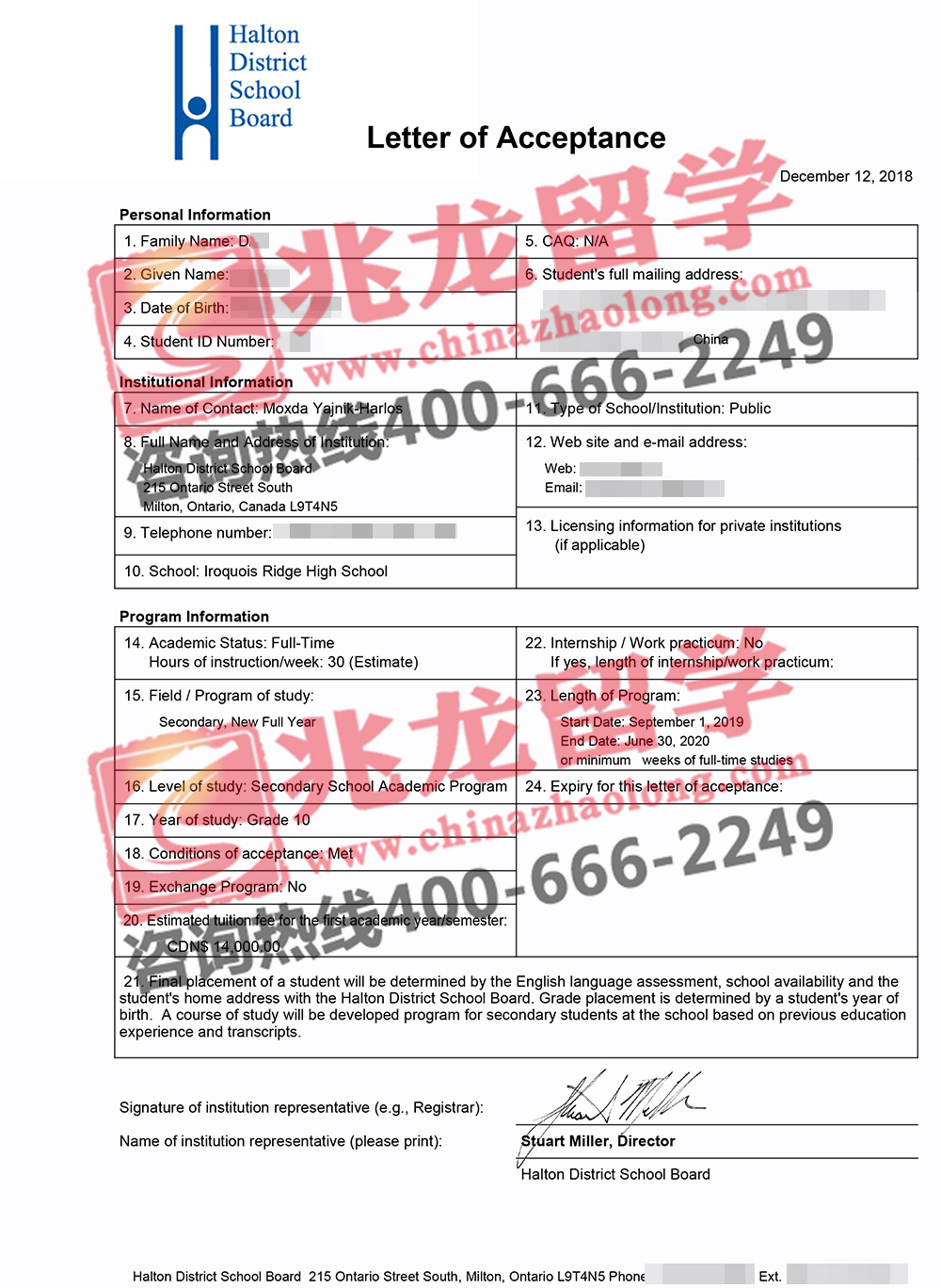 经过兆龙留学加拿大部老师的努力,成功为邓同学申请到加拿大哈尔顿教育局顶尖公立高中Iroquois Ridge High School录取offer,祝邓同学在Iroquois Ridge High School能获得更好的提升,为将来在加拿大留学读本科做最好铺垫。更多加拿大留学申请信息请拨打兆龙留学咨询热线400-666-2249。
