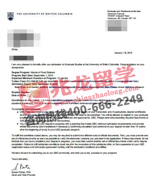 赵同学-英属哥伦比亚大学(UBC)食品科学硕士Offer
