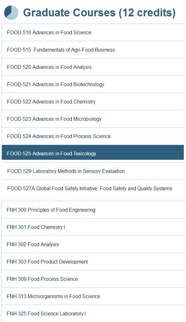 UBC食品科学硕士部分课程如下
