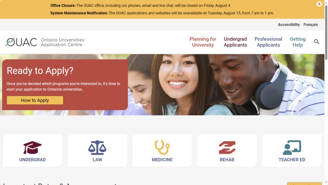 对于多伦多大学、麦克马斯特大学、滑铁卢大学、渥太华大学、约克大学等知名加拿大院校所在地安大略省来说,所有申请人都需要使用叫OUAC的安省申请系统提交申请信息。