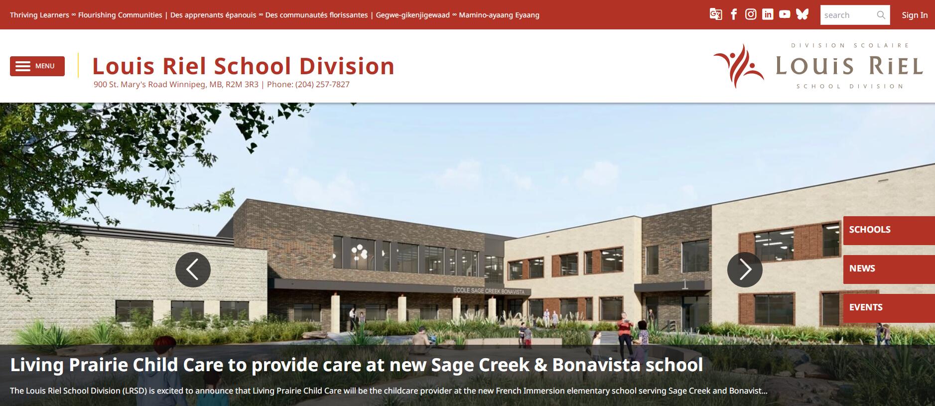 路易斯瑞尔育局(Louis Riel School Division,简称LRSD)坐落在加拿大曼尼托巴省首府城市温尼伯。温尼伯是一座重要的中心城市,环境优美,公园河流相映成趣,历史文化建筑鳞次栉比,多元文化活动更是种类繁多。城市自然风景极佳,距此不远便是湖泊浅滩,连绵草原。Louis Riel学区名称来源于曼尼托巴省创始人之一Louis Riel(路易丝瑞尔)。