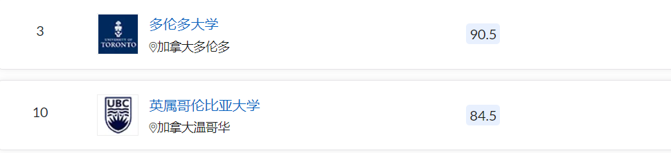 在该学科中,加拿大的多伦多大学和麦吉尔大学这两所顶尖名校进入了世界前10,是当之无愧的王牌专业之一。