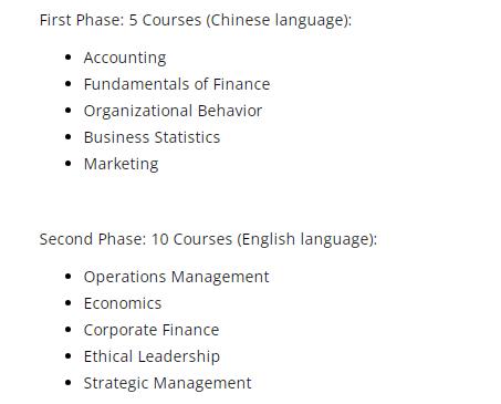 双语MBA硕士课程设置: