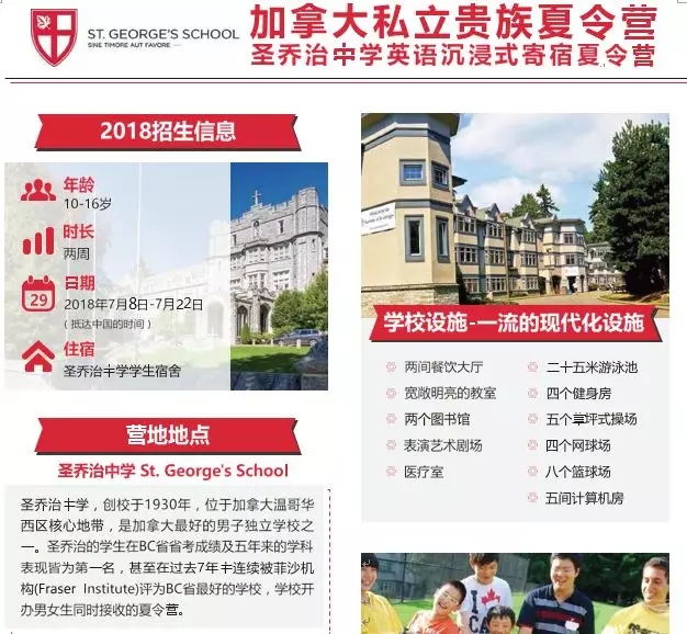 好消息,加拿大顶级私立贵族男校——圣乔治中学(St. George’s School)国际部招生负责人将于2018年11月16日赴中国北京进行访问及招生说明会,与优秀学生及家长进行面对面交流,表现突出的学生还可以安排参加随后的现场面试!
