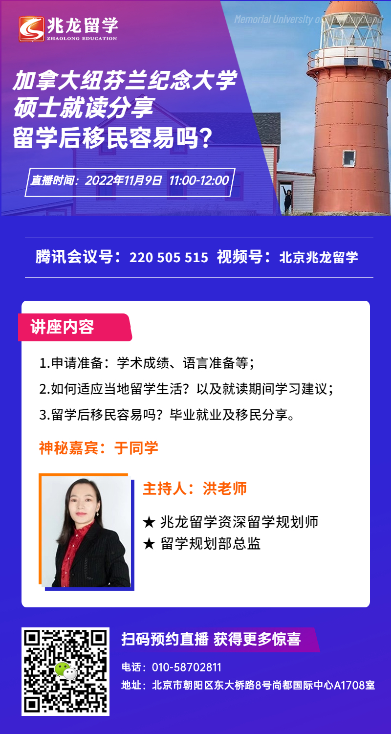 11月9日直播预告:加拿大纽芬兰纪念大学硕士就读分享,留学后移民容易吗?
