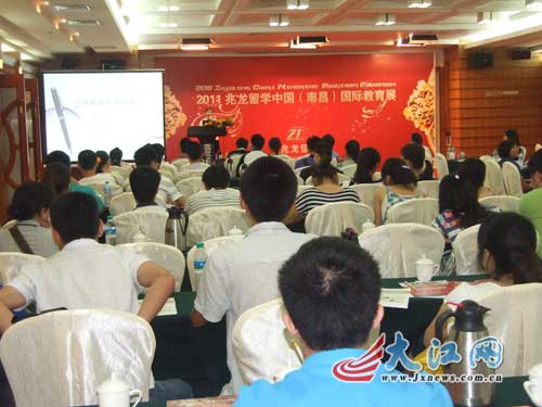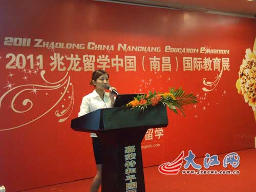 大江网讯 记者尹齐胜报道:7月2日下午,2011年兆龙留学中国(南昌)国际教育展在南昌嘉莱特和平国际大酒店盛大开幕。本次国际教育展受到了众多国外院校的热捧,来自美国、英国、加拿大、澳大利亚等国家的几十所国外院校齐聚南昌,与学生、家长面对面沟通交流,场面异常火爆。