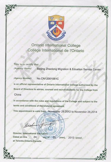为了增进中国和加拿大两国之间的文化交流,以协助中国公民欲往美国自费留学人员顺利抵达加拿大留学为共同目的。北京兆龙出入境中介服务中心根据平等互利原则,经友好协商与加拿大安大略国际学院建立招生与国际交流合作。 北京兆龙出入境中介服务中心作为加拿大安大略国际学院在中国的招生办事处和联络处,负责全权代理在中国大陆地区招生和业务的开展工作。