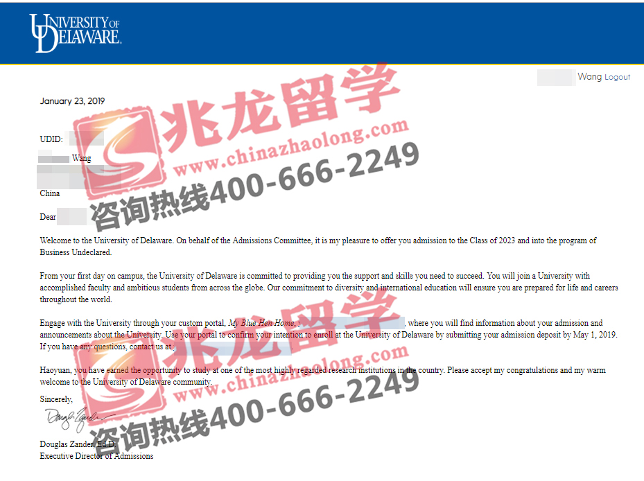 经过兆龙留学美国部老师的努力,成功为王同学申请到美国特拉华大学本科offer,以下是学生offer分享,在此祝他留学之路一切顺利!更多美国留学申请信息请拨打咨询热线400-666-2249。