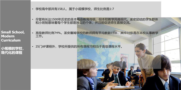 教学理念:尽管有长达1500年历史的圣本笃会教育传统,但本校教学风格现代。小规模学生群体能促进师生直接交流,利于老师密切指导。