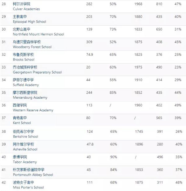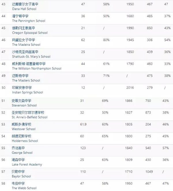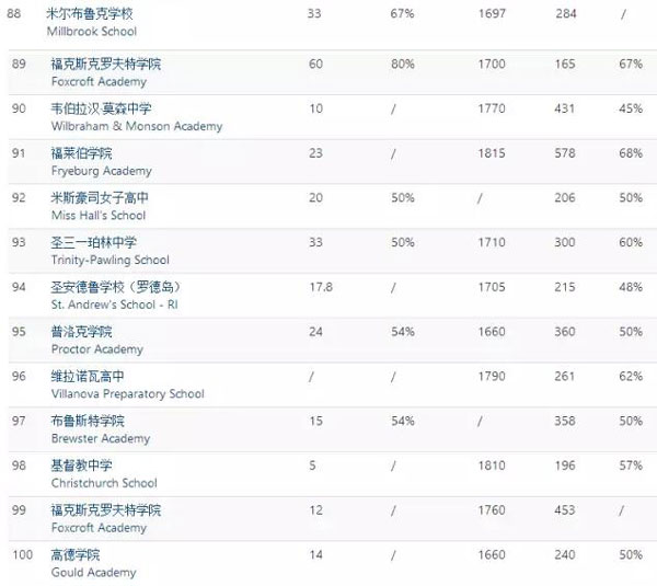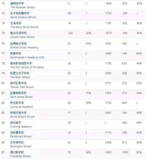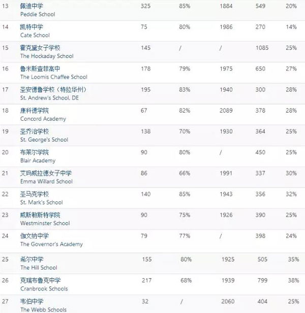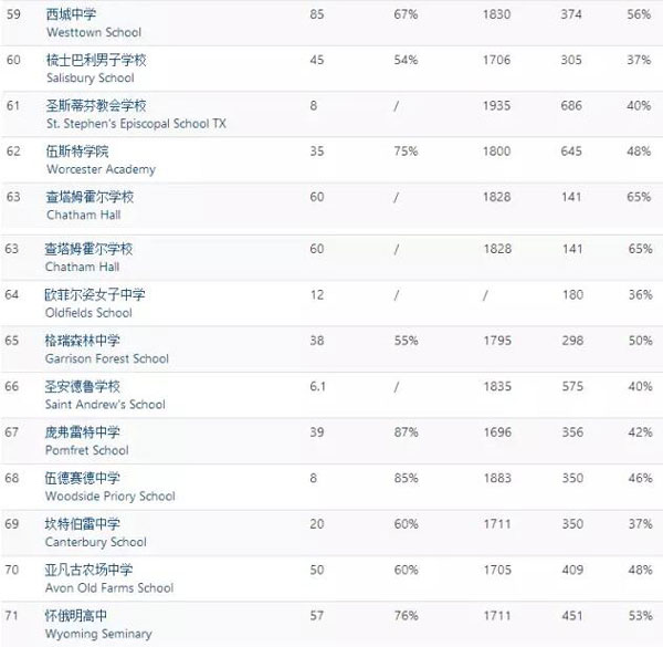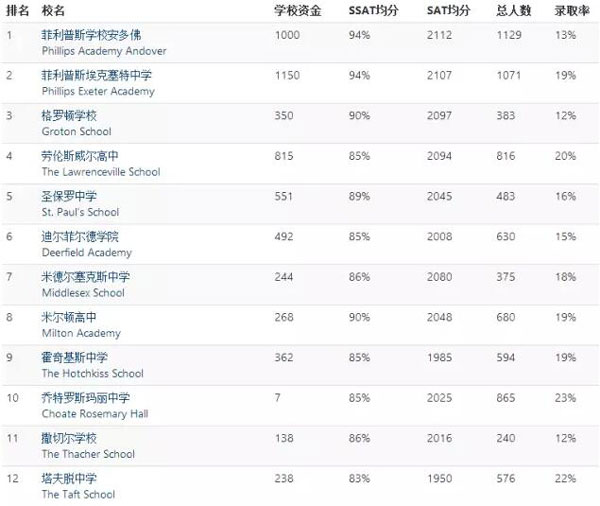 注:该排名是根据毕业生SAT分数、录取学生的SSAT均分和校务基金规模综合得出的。(该排名并非美国教育部官方数据,仅供参考哦!)