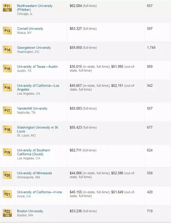 2019USNews全美最佳研究生院:法学院,今年法学院排名规则同样收录进了GRE成绩。