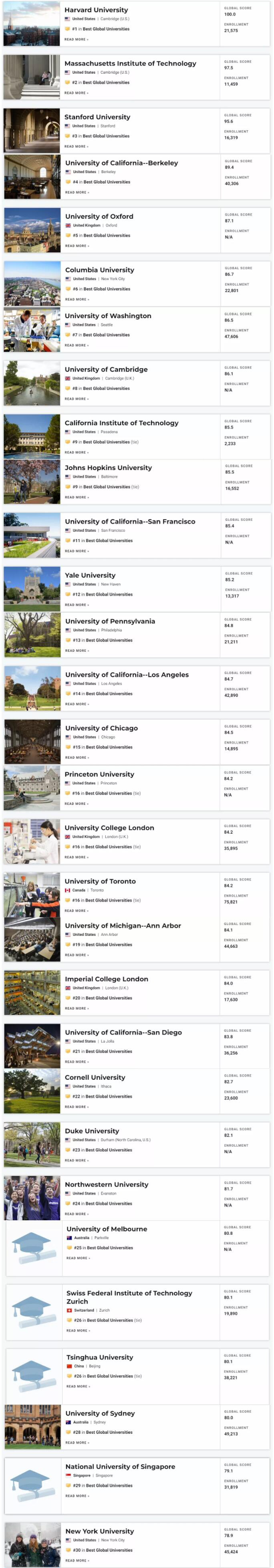 就在今天!2022年度U.S. News世界大学排名重磅发布!至此,今年世界四大权威机构最新世界大学排名已经全部发布!