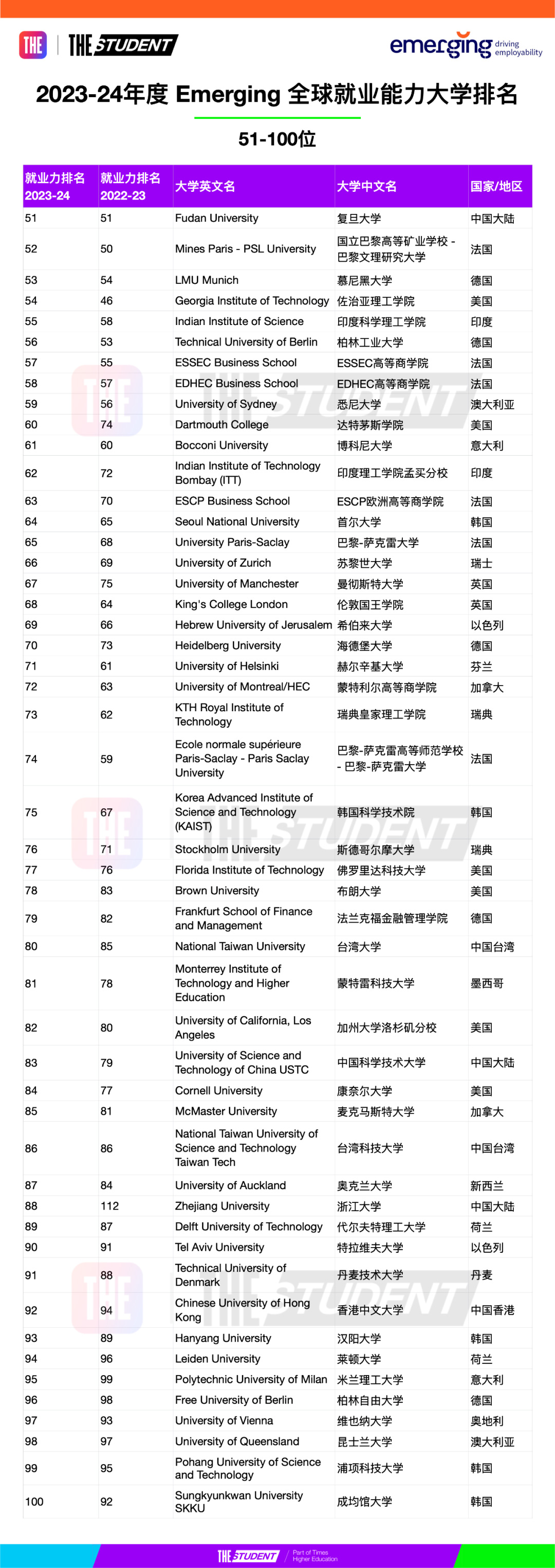 03、2023-24年度全球就业能力大学排名1-100榜单