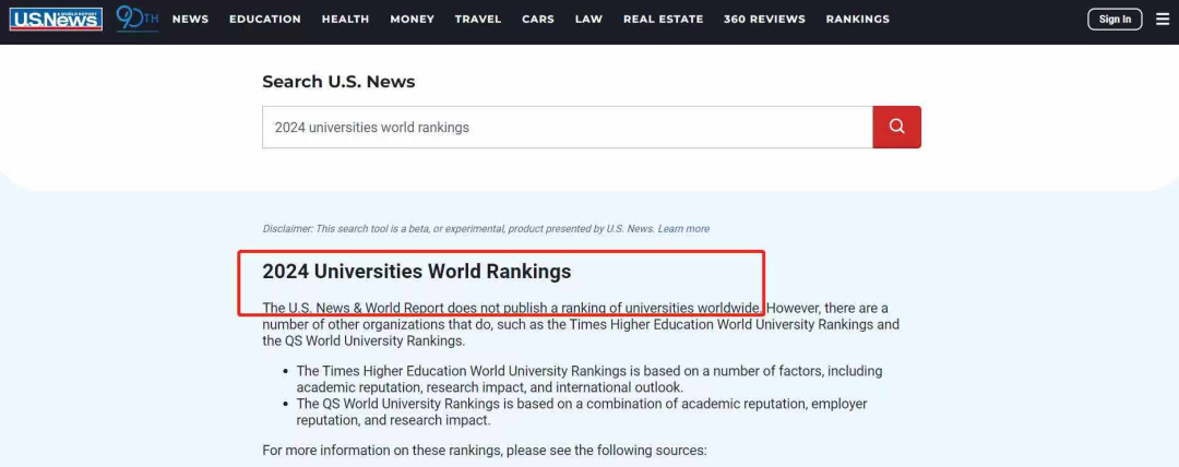 不仅如此,U.S. News官方甚至直接说:“如果要查找全球院校排名,就去看QS和THE”。