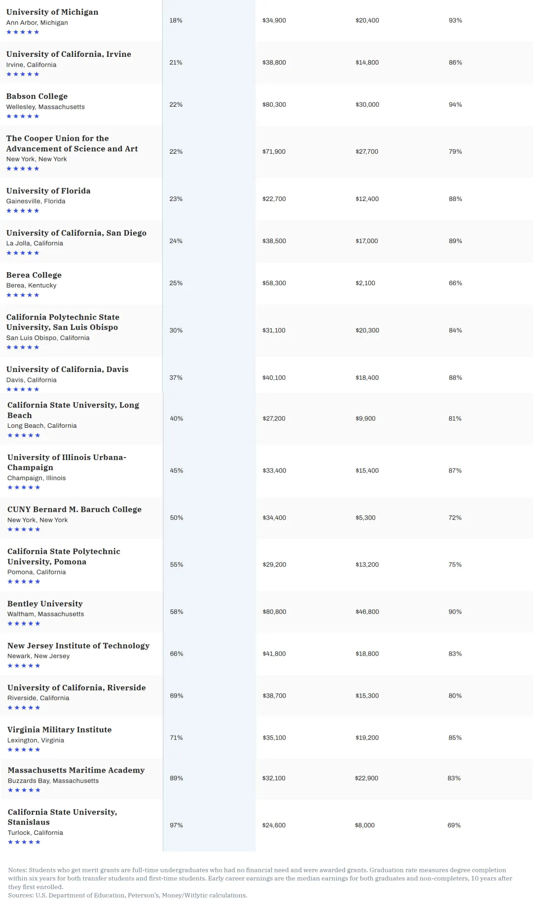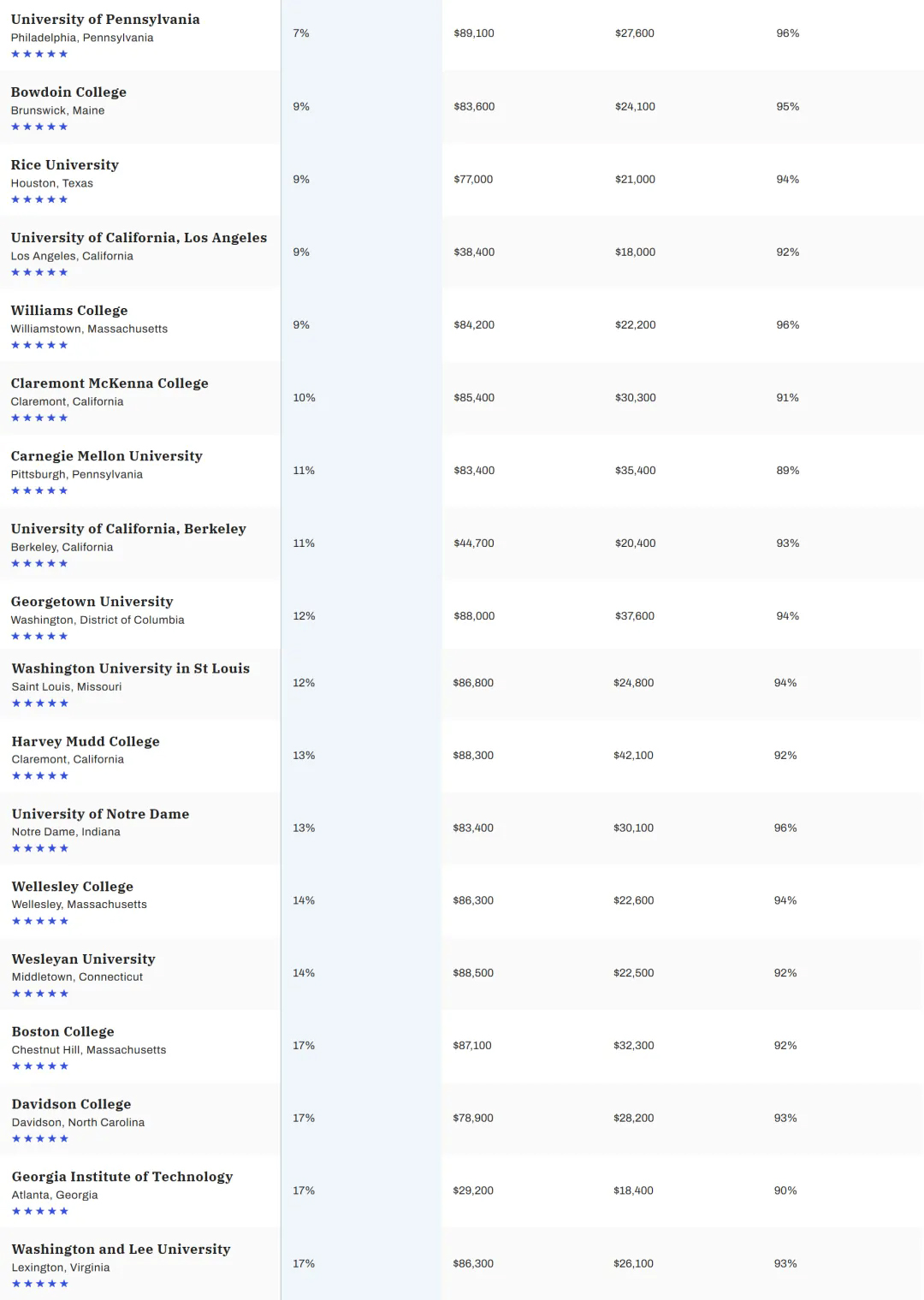 不同于QS、U.S. News、THE泰晤士、软科四大排名,《Money》评选的“全美最佳大学”更看重性价比。
