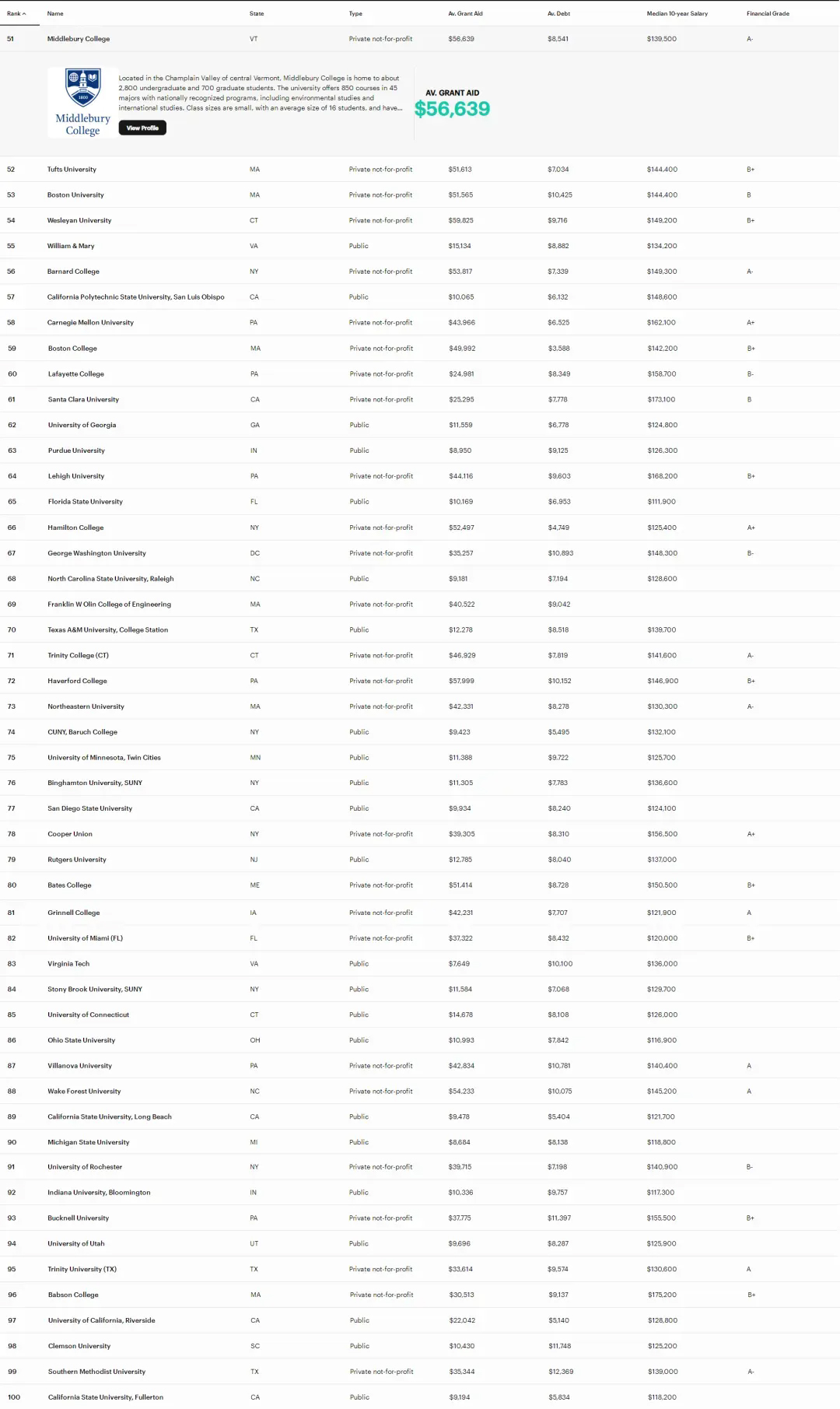 ●学术成就(10%):每所大学最近获得富布赖特、杜鲁门、戈德华特和罗兹奖学金的毕业生人数,以及过去三年中获得博士学位的校友的平均人数。