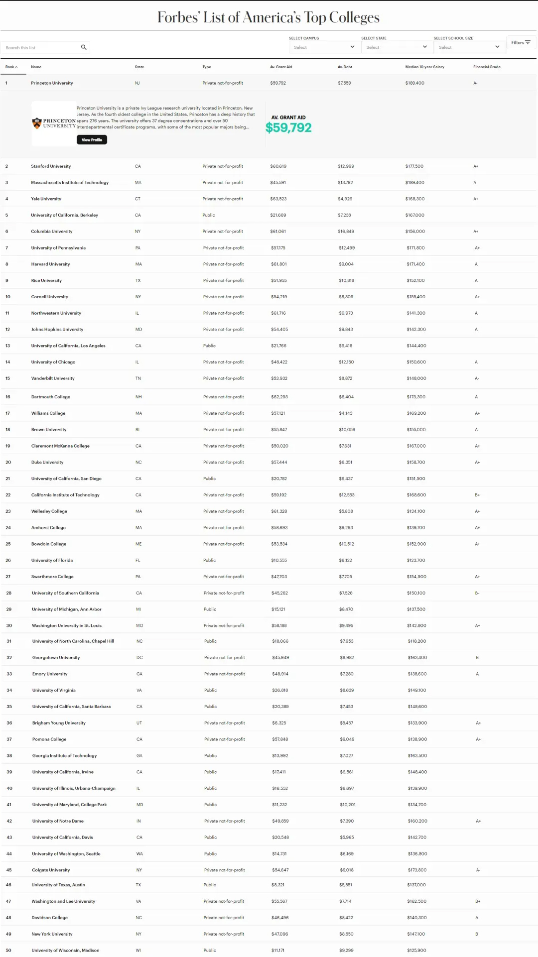 《福布斯》的2025年度榜单列出了500所学校,这些学校培养了来自各个经济背景、成绩优异、收入高、有影响力的毕业生,且学生债务较少。