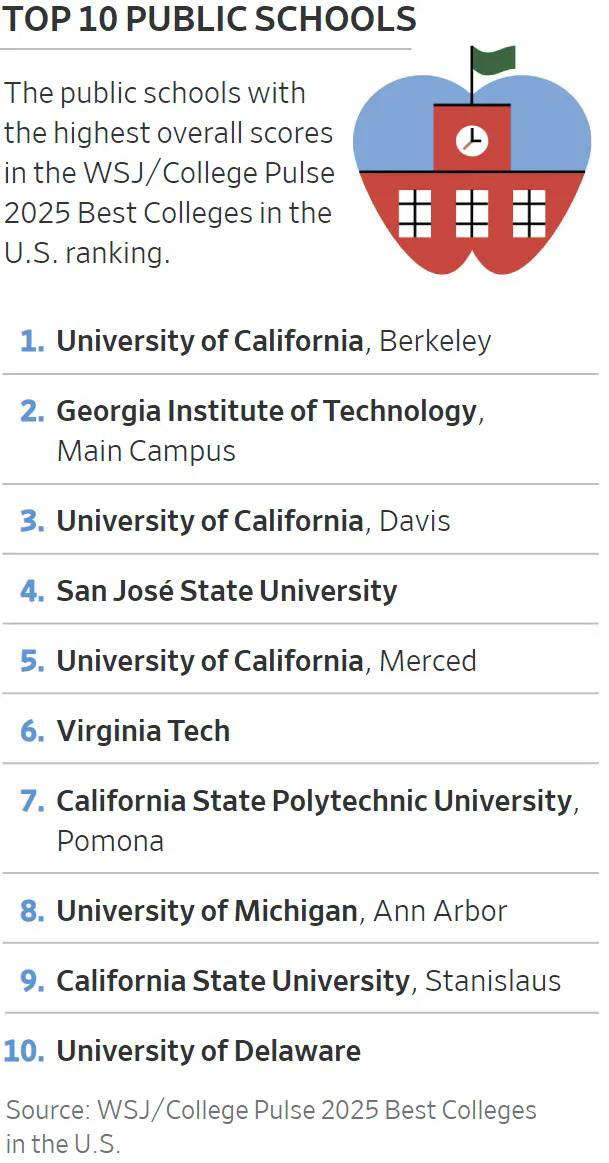 近日,各大机构相继发布了最新的美国大学排名,《华尔街日报》(WSJ)联合College Pulse公布了2025年美国最佳大学排行榜。