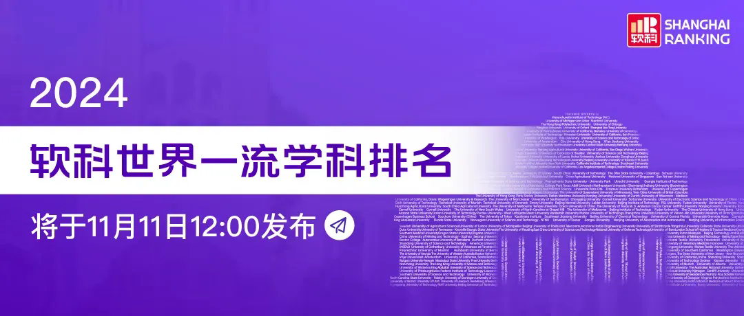 刚刚,高等教育评价专业机构软科正式发布2024“软科世界一流学科排名”(ShanghaiRanking's Global Ranking of Academic Subjects)。