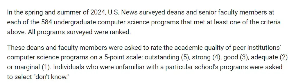 U.S. News向符合条件的584所大学本科计算机科学项目的主任及教职人员发放了问卷调查。