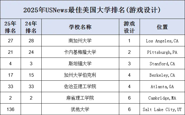 值得注意的是,因游戏开发名声大噪的犹他大学也跻身前50名。